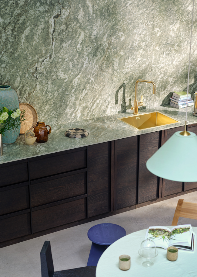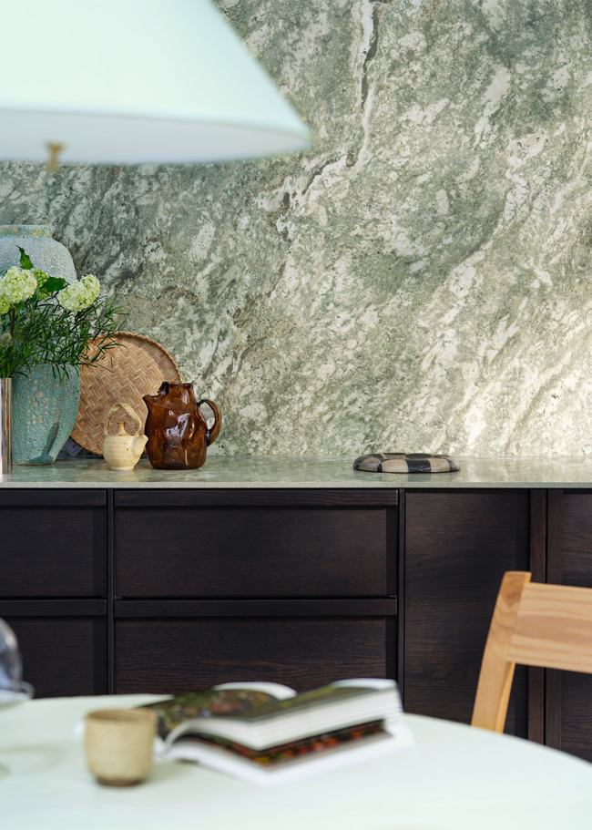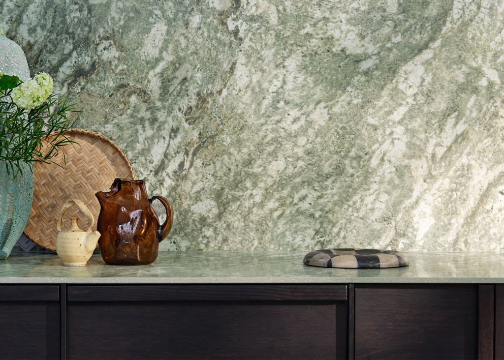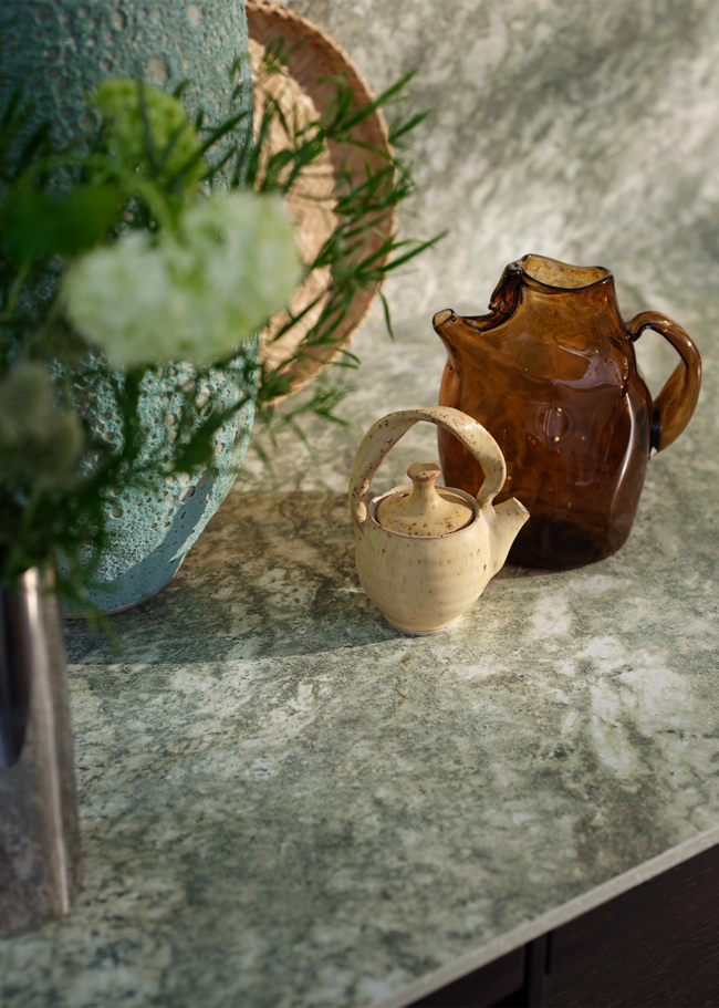 Kolmården Classic Honed is a 12 mm porcelain stoneware countertop inspired by the iconic Kolmården marble - one of Sweden’s most well-known and beloved natural stones. It originates from the historic quarries in Östergötland and is characterized by a deep green play of color with striking variations.