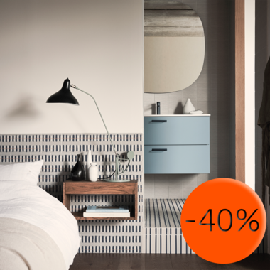 Fitted kitchen with wall and window niches covered in patterns by Stig Lindberg