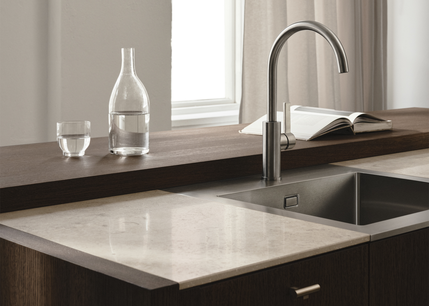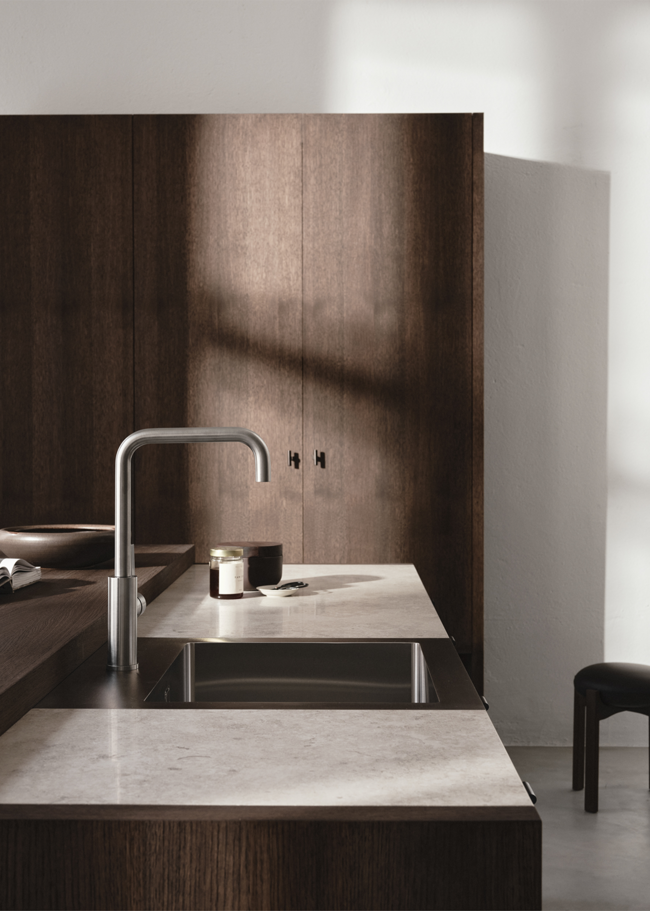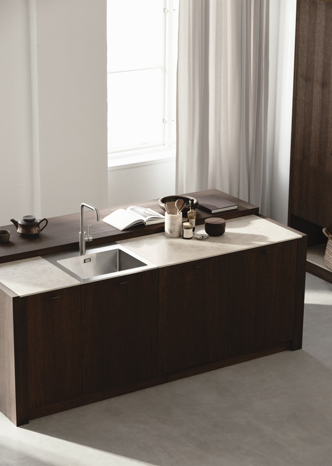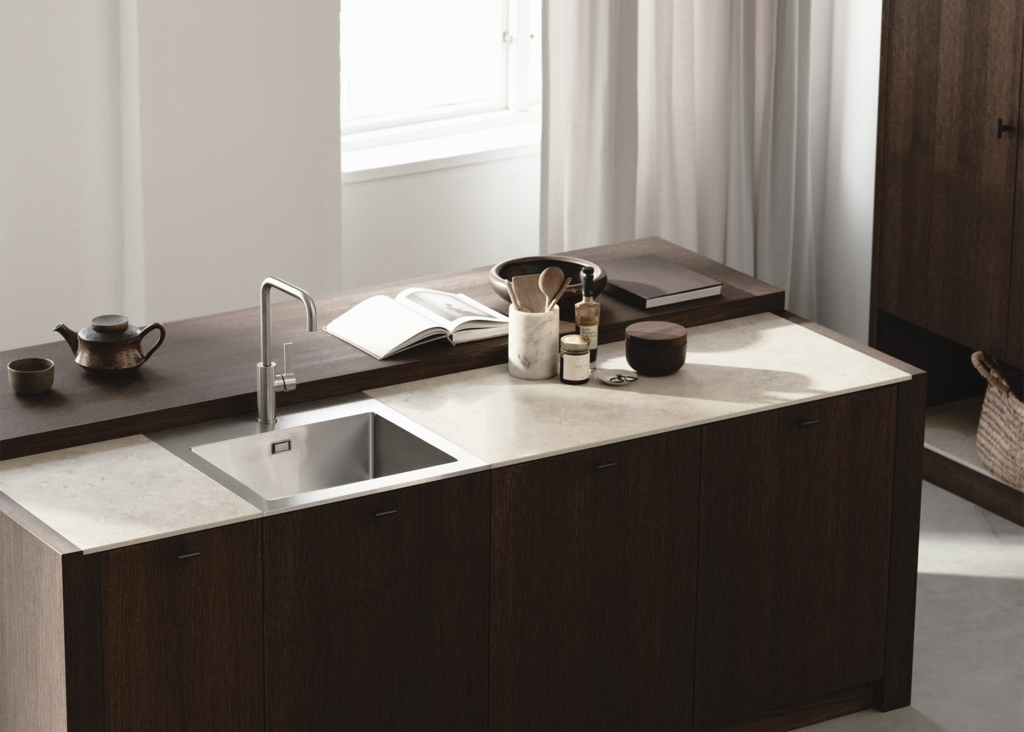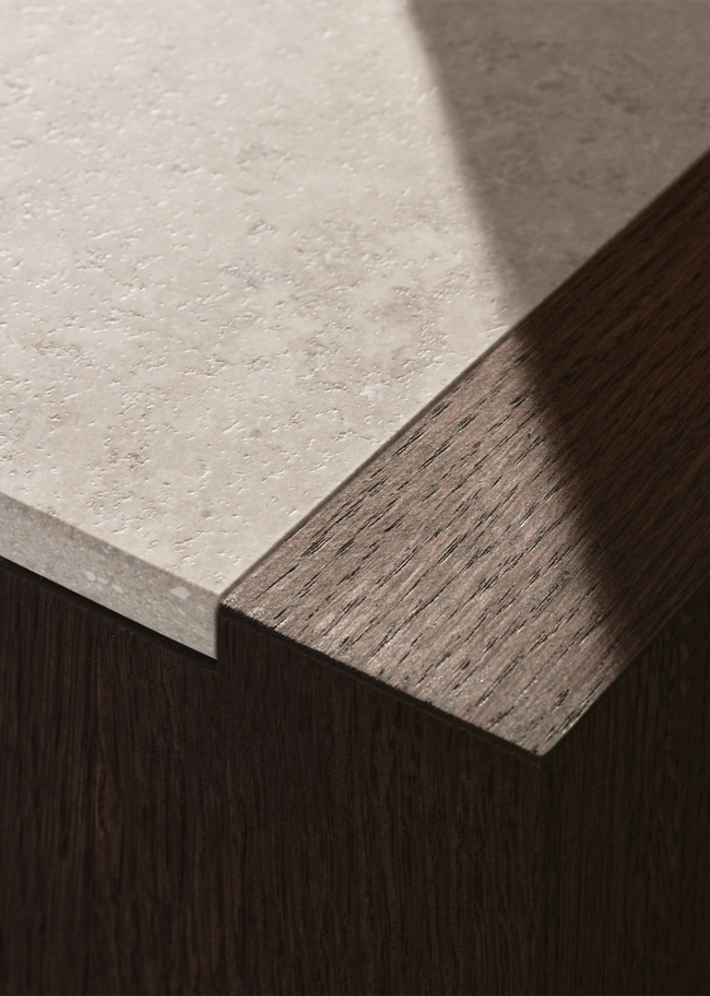 Tervetuloa tähän avaraan keittiöön, jossa jokaisella yksityiskohdalla on oma paikkansa. Jura Select Ivory Honed -sarjan työtaso, puu ja allas luovat yhdessä saumattoman ilmeen, joka sulautuu miellyttävällä tavalla. Työtaso yhdistää klassisen estetiikan ja modernin teknologian luodakseen pinnan, joka on sekä toimiva että kaunis. Suositusta jurakalkkikivestä inspiroitunut Jura Select Ivory Honed, tunnettu fossiilimaisista yksityiskohdistaan, onkaloistaan ja hienovaraisista juovistaan, on vanginnut kiven ajattoman kauneuden ja mukauttanut sen nykypäivän tarpeisiin.