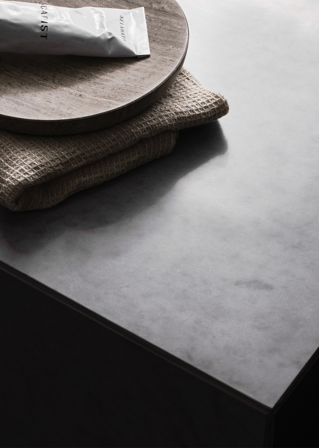 Kuten muutkin sarjan sävyt, Glanshammar Dark on hienohiottu ja silkkimatta – niin kutsuttu Honed – joka jäljittelee luonnonkiviteollisuuden perinteistä kivipinnan käsittelyä. Pinnan Matt versio tarjoaa paremman liukuesteen tiloihin, joissa tarvitaan lisäturvallisuutta.