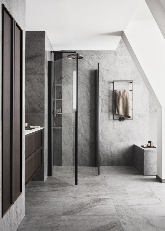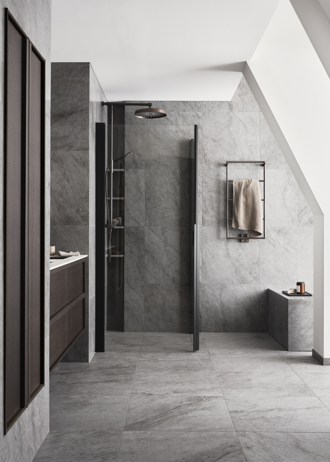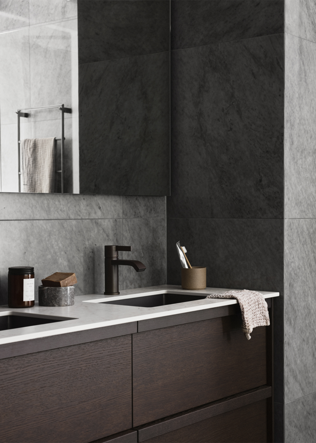 Glanshammar Dark -graniittikeramiikka on tummempi lisäys Glanshammar-sarjaan, jota inspiroi klassinen ruotsalainen Ekeberg-marmori. Tässä sävyssä on syvempi, lämmin vivahde, joka muistuttaa kiven luonnollisen väriskaalan tummimpia sävyjä. Glanshammar Dark luo maanläheisen tunnelman säilyttäen samalla sarjan eleganssin ja alkuperäisen luonteen.
